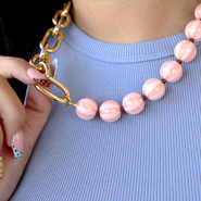16 mm DQ® Acrylperlen mit Streifen Pink-golden brown