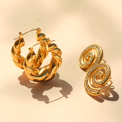 Ohrringe aus Stainless Steel - Rostfreiem Stahl Ohrstecker Spirale mit Strass Gold-transparent