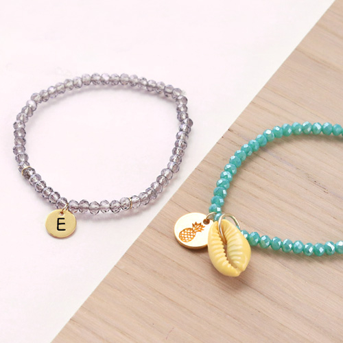 Das ist ganz einfach! Sie können diese Armbänder mit den neuen vorgefertigten Top Facett Armbändern aus unserem Sortiment herstellen. Hängen Sie alle Anhänger mit Biegeringen an die Armbänder und fertig! Machen Sie Armbänder mit nur einem Anhänger oder hängen Sie das gesamte Armband voll mit hübschen Armbändern. Zum Abschluss versehen Sie die Initialen Ihres Shops auf einem ImpressArt Anhänger.