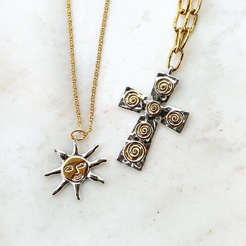Die stilvollen Ringe und Anhänger dieser Serie überzeugen einerseits durch ihre angesagte Gold- und Silberoptik und andererseits durch ihre trendigen Designs. Die Anhänger ergänzen die Ringe perfekt in individuellen Kettendesigns zu stimmigen Schmucksets. Jetzt stöbern und Ihr Sortiment mit dieser ansprechenden Serie bereichern.