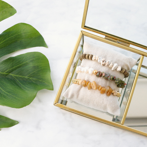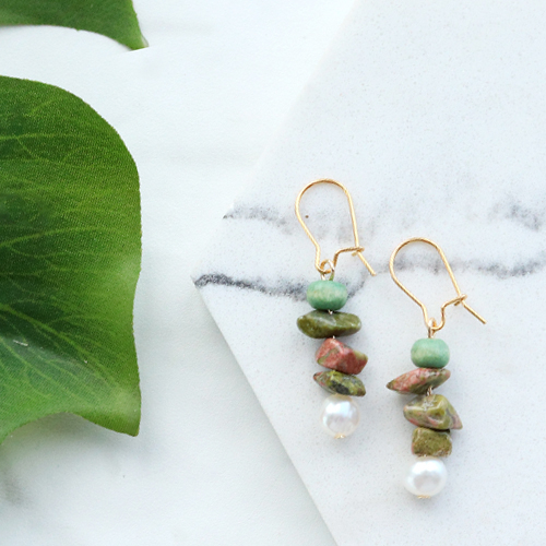 Ist dieser Schmuck nicht atemberaubend? Als wir mit diesen schönen Perlen Schmuck machen durften, konnten wir einfach nicht entscheiden, was es sein sollte. Die Möglichkeiten sind endlos! Aus diesem Grund haben wir beschlossen, uns nicht zu entscheiden und Ohrringe, eine Kette und Armbänder zu machen. Auf diese Weise können Sie sie miteinander kombinieren oder sich einfach inspirieren lassen und ein Teil dieses Sets werden! Wir haben die Chips Stone Perlen in diesem Set mit DQ Metall Perlen, Anhängern und Zubehör, Preciosa Perlen und Süsswasserperlen kombiniert. Für alles verwendeten Zubehör scrollen Sie einfach nach unten.