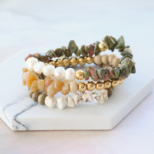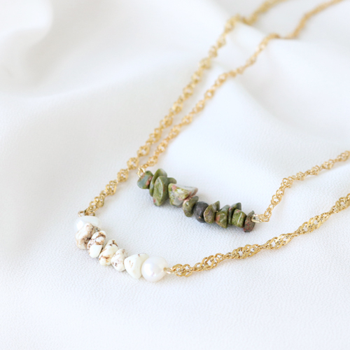 Wunderschöne Ohrringe, Armbänder und Halsketten mit Chips Stone Perlen