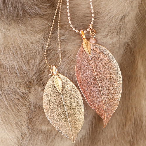 Feine Ketten verziert mit Blatt Anhängern aus echten metallbeschichteten Blättern