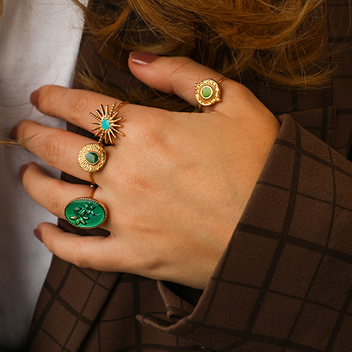 • Ringe aus Stainless Steel - Rostfreiem Stahl Enamel Rund Gold-light green