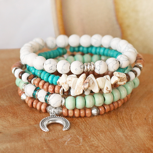Suchen Sie nach Inspiration für Holzperlen? Dann sind Sie bei uns genau richtig! Wir machten uns an die Arbeit und fertigten einige tolle Armbänder mit Holzperlen für Männer und Frauen an. Bei der Gestaltung von Herrenarmbändern macht es großen Spaß, verschiedene dunkle Holzperlen zu verwenden. Stellen Sie ein Armband mit verschiedenen Holzperlen, DQ-Metallperlen und elastischem Draht zusammen. Andererseits können Sie ein trendiges Damenarmband kreieren, indem Sie Holzperlen auf gewachste Schnur auffädeln und diese dann zu einer Blume drehen. Tipp: Tragen Sie etwas Kleber auf die Spitzen des Drahtes auf, damit sich die Perlen leicht auffädeln lassen. Für einen extra sommerlichen Look können Sie das Armband auch mit Kaurimuscheln ergänzen. Gestalten Sie verschiedene Armbänder, indem Sie die Holzperlen mit Natursteinperlen, Chipstones und DQ-Metallanhängern kombinieren. Legen Sie los und kreieren Sie schönen Schmuck mit natürlichem Aussehen!
