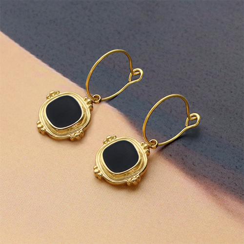 Stainless Steel - Rostfrei Stahl Anhänger Viereck Enamel Gold-black