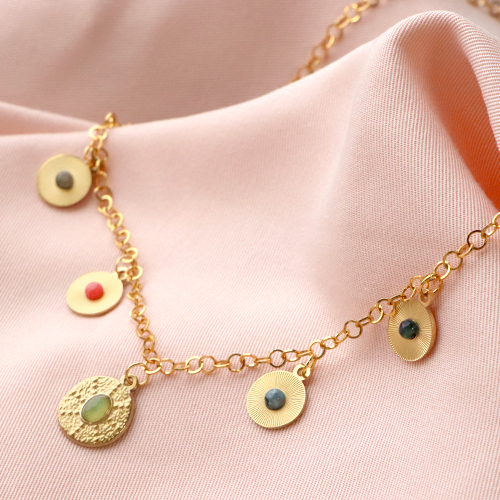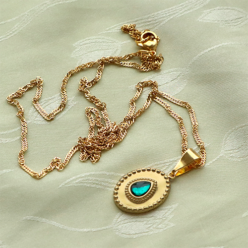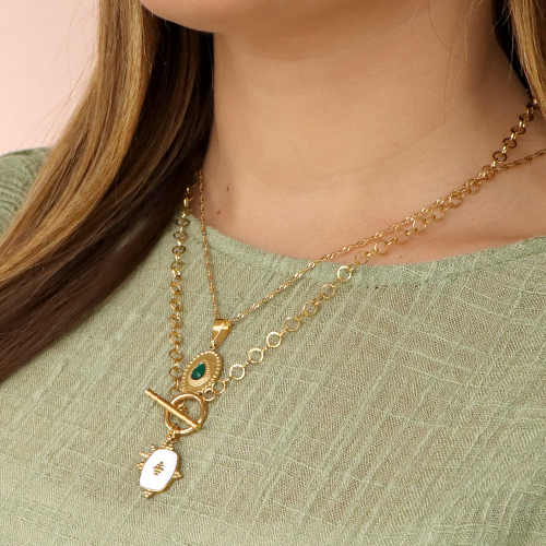 Stainless Steel - Rostfrei Stahl Anhänger irregular mit Naturstein Gold-honeydew green