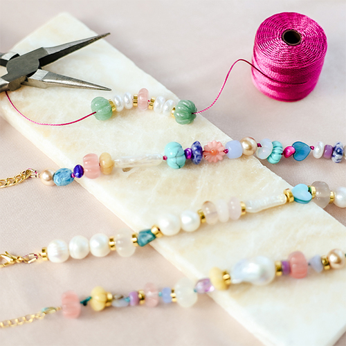Neue Serie mit bezaubernden Naturstein-Blumenperlen; die ideale Basis für die Kreation angesagter Armbänder! Kombinieren Sie sie geschickt mit unseren stilvollen Süßwasserperlen und anderen Natursteinperlen aus unserer Online-Kollektion. Der Erfolg ist Ihnen garantiert!
