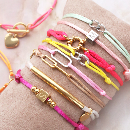 Lassen Sie sich von unseren Ideen für trendige Armbänder mit Satinband und Zwischenstücken aus Edelstahl inspirieren! Zuerst wählen Sie ein Satinband in Ihrer Lieblingsfarbe aus. Ziehen Sie das Satinband anschließend durch das Zwischenstück und befestigen Sie es an beiden Seiten mit Schlaufen. Damit das Zwischenstück nicht verrutscht, können Sie zu beiden Seiten eine Edelstahlperle aufziehen. Verschließen Sie das Armband dann mit einem Schlupfknoten. Oder verwenden Sie ein Kapitelschloss. Für abwechslungsreiche Armbänder einfach auch andere Perlen, Anhänger und Buchstabenperlen aus Edelstahl kombinieren. Schön an den Armbändern sehen auch Rocailles oder Süßwasserperlen aus. Verspielte Looks gelingen mit Jasseron-Armbändern aus Edelstahl.
