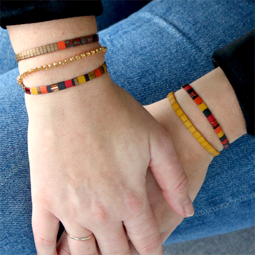 Mit Miyuki Tila Perlen können Sie die schönsten trendigen Kreationen machen, wie dieses Armband mit Macramé Band. Garnarmbänder, die nur aus Miyuki tila's bestehen und Sie haben ein schönes Set. Diese Tila's eignen sich auch perfekt zur Kombination mit anderen Miyuki Perlen, wie z.B. Delica‘s. Lassen Sie Ihrer Kreativität freien Lauf mit diesen Trendperlen!