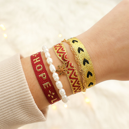 Schmuckband mit Text Blockmuster Pink-red-gold