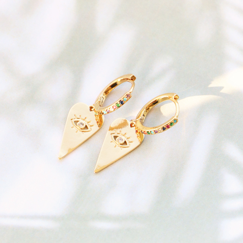 Brass TQ Metall Anhänger Herz Auge der Vorsehung Strass Gold