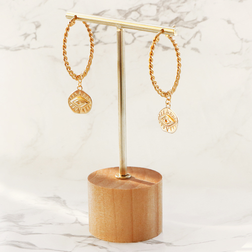 Schmuckdisplay T-Form mit Holz Ständer für Ohrringe (3st.) Natural (natürliche Farbe Holz)-gold