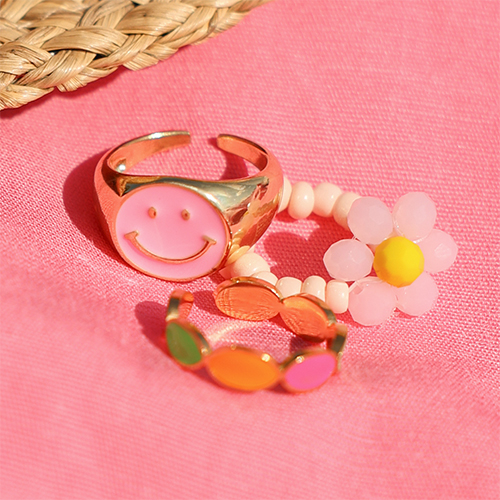 Trendy Ringe Enamel Smiley Pink-gold