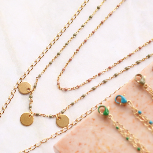 Schmuck aus Top Qualität machen mit einem stilvollen Look und einem kleinen Hauch von Farbe? Dann beginnen Sie mit dem neuesten Jasseron Stainless Steel und Karabiner Verschlüsssen mit farbigen Öldetails. Diese Artikel passen perfekt zusammen und damit können Sie die besten Armbänder und Ketten herstellen. Versuchen Sie auch, den Jasseron mit Öldetails mit einer anderen Variante Jasserons zu kombinieren, um einen spielerischen Effekt zu erzielen. Sie können es kombinieren, indem Sie zwei Schichten in Ihrem Armband oder Ihrer Kette erstellen. Sie befestigen die beiden Ebenen an demselben Verschluss und machen es zu einem Artikel. Als schönes Detail können Sie einen Stainless Steel Anhänger an den Verschluss befestigen oder zum Beispiel mehrere Anhänger mit einem Biegering in die Mitte der Kette hängen.