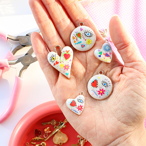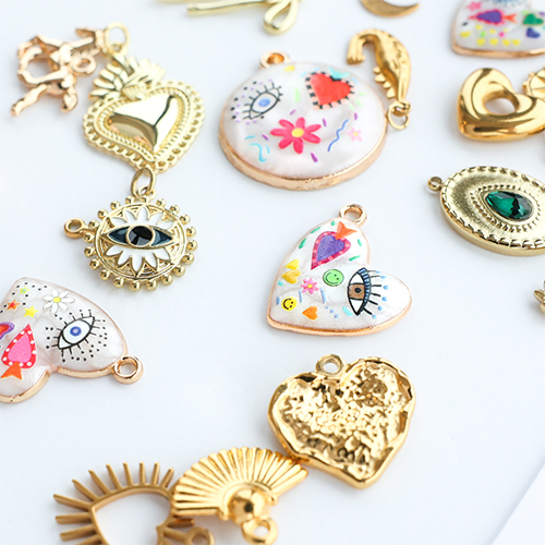 Die funky Metallanhänger mit Emaille dieser neuen Kollektion in Goldoptik sind ein echter Hingucker! Kombinieren Sie die Anhänger mit Jasseron und verschiedenen Charms für einzigartige, verspielte Bettelketten. Mixen, kombinieren und kreieren Sie für Ihre eigene funky Frühjahrskollektion!
