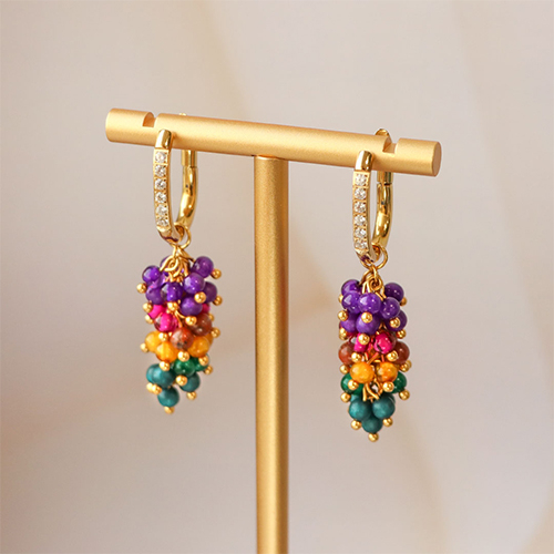 Polaris-Perlen kombiniert mit Süßwasserperlen, Disc-Natursteinperlen und Edelstahlperlen haben immer ihren besonderen Reiz. Stilvolle Ketten lassen sich mit diesen Elementen und Jasseron entwerfen. Für Statement-Ohrringe lassen sich mit Nietstiften und Perlen Anhänger in Doldenform entwerfen. Fädeln Sie Perlen auf die Nietstifte und befestigen Sie 6 dieser Anhänger an einem Biegering und teilen Sie die Anhänger in 2 Teile. Hängen Sie einen weiteren Biegering mit 4 Anhängern in die Mitte und fahren Sie auf diese Weise fort, bis Sie 1 Anhänger in der Mitte haben.
