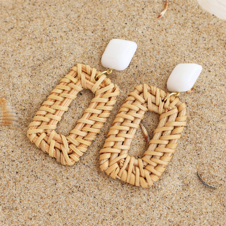Trendy Ohrringe Rattan Natural white