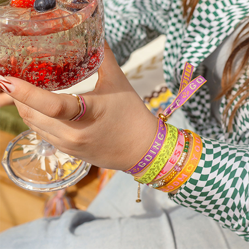 Entdecken Sie unsere exklusiven Schmuckbänder mit individuellen Textdesigns, entworfen von unserem erfahrenen Team. Einfach zurechtschneiden und mit eleganten Stopperperlen oder Bandklemmen schließen für einzigartige Armbänder, Choker und Fußkettchen. Kombinierbar mit Jasseron für unendliche Möglichkeiten, um Ihre eigene Marke zu präsentieren.