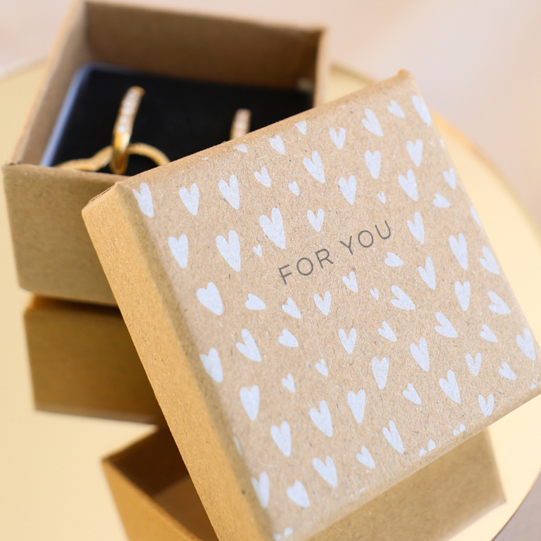 Wer liebt nicht ein hinreißendes Schmuckstück, verpackt in einer einzigartigen Box mit einer persönlichen Note? Unsere eigens gestalteten Boxen und Karten, mit Aufschriften wie " For you" und " Pretty things inside", zaubern garantiert ein Lächeln auf die Lippen Ihrer geschätzten Kunden!