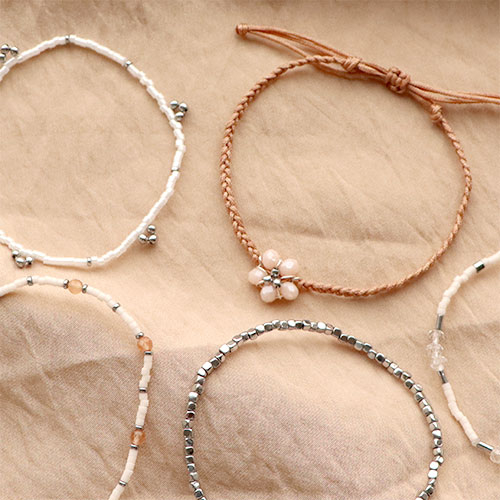 Sie wollen eine elegante Armbandkollektion mit kleinen Perlen zusammenstellen? Diese Hämatitperlen lassen sich wunderbar mit anderen Natursteinperlen wie Natursteindiscs, Katzenauge oder facettierte Perlen kombinieren. Verwenden Sie elastisches Fädelmaterial und Schmuckkleber, um zierlich moderne Armbänder herzustellen. Sie können auch kleine Anhänger aus Hämatitperlen mit Nietstiften herstellen und sie mit Makrameeband kombinieren, um einen überraschenden Effekt zu erzielen.