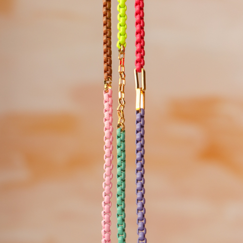 Mit dieser Serie coloured Jasseron gestalten Sie im Handumdrehen einfache und doch elegante Armbänder und Halsketten. Wenn Sie diese Gliederketten verarbeiten, verwenden Sie Beadsmith Seitenschneider zum Öffnen der Kette und die Flachzange mit Kunststoffenden zum Schließen der Kette. Auf diese Weise beschädigen Sie die Beschichtung nicht. Kombinieren Sie die farbige Jasseronkette mit goldfarbenen Gliedern und vergessen Sie nicht, eine schöne Verlängerungskette anzubringen!
