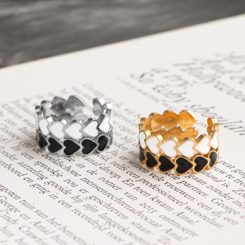 Ringe aus Stainless Steel - Rostfreiem Stahl Enamel Herz White-gold