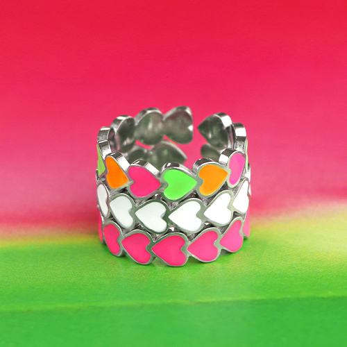• Ringe aus Stainless Steel - Rostfreiem Stahl Enamel Herz Neon multicolour-gold