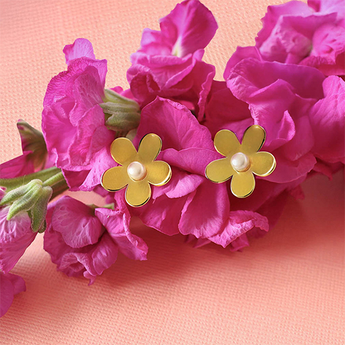 Ohrringe / Ohrstecker aus Stainless Steel - Rostfreiem Stahl Perlen Blume Gold