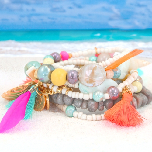 Machen Sie jetzt selbst ein super Armband. Diese Beach Armbänder sind absolut hipp. Schön natürlich und haben viel von einem spontanen, abenteuerlichen Look! Kombinier viele verschiedene Perlen aus unserer Kollektion und reih drauf los!