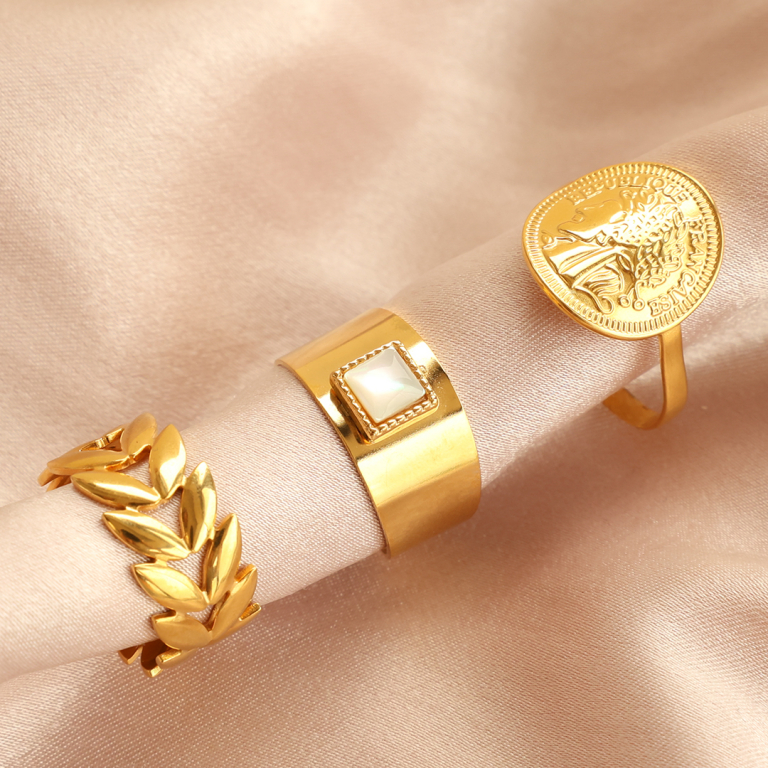 Ringe aus Stainless Steel - Rostfreiem Stahl Blatt Gold