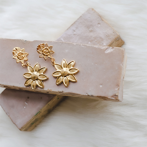Ohrringe aus Stainless Steel - Rostfreiem Stahl Ohrstecker Blume mit Öse Gold