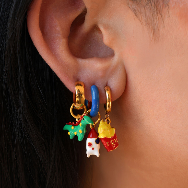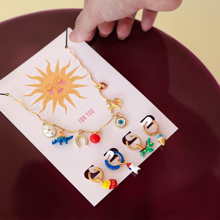 Die emaillierten Metallanhänger dieser neuen Serie verleihen jeder Schmuckkreation eine nostalgische Note. Ob verspielte Giraffen, süße Eiscremes, maritime Fische oder coole Raketen – die detailreichen Designs sind perfekt für trendige Ohrringe, Ketten oder Armbänder.