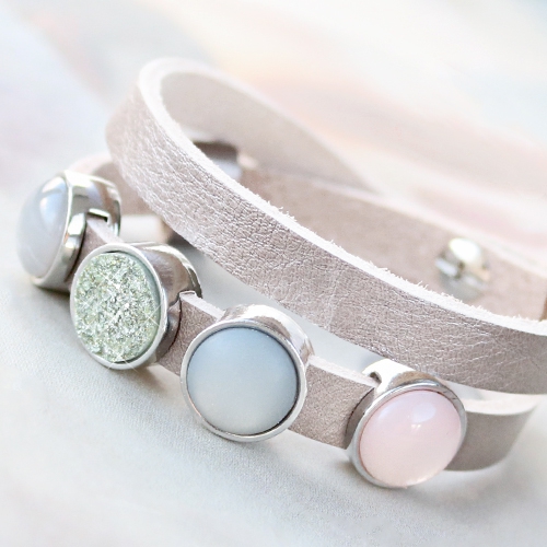 Dieser stilvolle Schmuck ist ein echter Gewinn für Ihre Frühlingskollektion! Die neuen Cabochons von Polaris Elements haben eine luxuriöse Ausstrahlung. In Kombination mit DQ Metall und Designer Quality Leder oder einem Polaris Cuoio Armband ist das super schick. Verwend Pastelltöne Cabochons in Kombination mit Cuoio Armbändern oder DQ Leder in Metallic Farben. Das passt super zusammen, zu dem DQ Metall und gibt einen prachtvollen Kontrast. Unser Liebling aus diesem Inspirationsset sind echt die DQ Leder Armbänder mit Cabochons und Designer Quality Metall Schieber, so schick! Die zarten Farben sind auch noch absolut Sommer und frühlingstauglich!