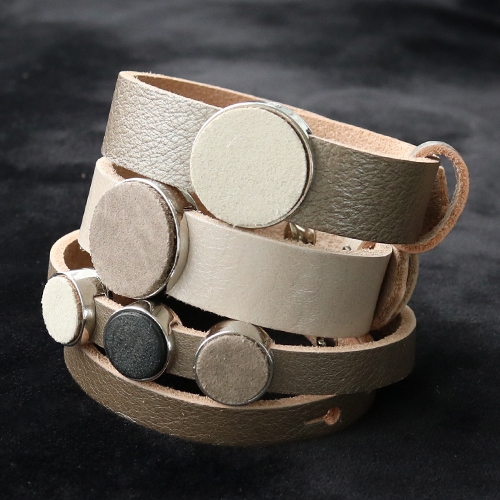 Das Leder bleibt dank der guten Qualität lange schön! Kombinier die Leder Cabochons mit Cuoio Armbändern in Metallic Farben für festliche und stilvolle Artikel. Mach endlos Kombinationen mit verschiedenen Cabochons und Cuoio Armbändern. Und mach die Armbänder und Schlüsselanhänger mit Anhängern von DQ Metall und trendy Macramé Band.