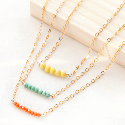 Können Sie noch Inspiration gebrauchen, beim Erstellen von schönem Schmuck mit unserer neuen Kollektion Facett Perlen? Wir helfen Ihnen gerne auf den Weg! Diese vielseitigen Perlen können für praktisch jedes Schmuckstück verwendet werden. Deshalb haben wir auch fröhliche Armbänder, Fusskettchen und Ketten hergestellt. Verwenden Sie als Basis Jasseron aus DQ Metall und reihen verschiedene Farben Facett Perlen auf einen Nietstift oder Kettelsltift. Das macht einen Anhänger oder Zwischenstück mit einem super sommerlichen Effekt! Dies können Sie auch mit Ketten machen und Sie haben ganz einfach und schnell fantastischen Schmuck. Eine andere Möglichkeit ist es, um die Perlen auf Elastik zu reihen und zu kombinieren mit DQ Metall Perlen oder Miyuki Rocailles. Legen Sie los!