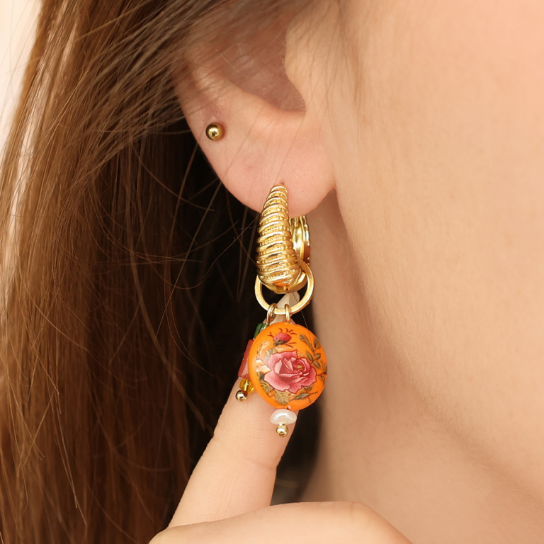 Trendy Ohrringe Creolen Enamel 15mm Pink-gold