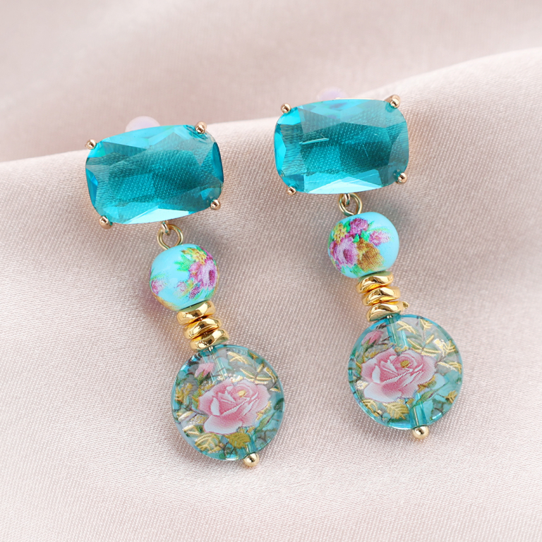 • Ohrringe / Ohrstecker aus Kristallglas mit Öse Rechteck Green-gold