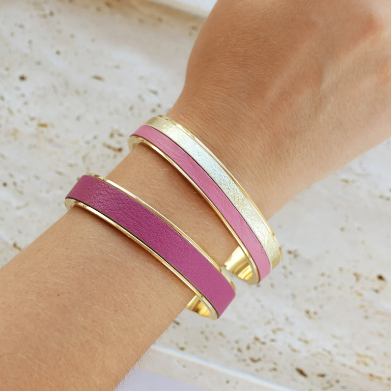 Diese trendigen Clutches, Geldbörsen und die 5 und 10 mm breiten Taschen-Strips sind aus italienischem Leder gefertigt. Die Geldbörsen sind in den Größen Medium und Small erhältlich. Die Taschen-Strips an Clutches und auf unseren Armreifen ergeben individuell trendige Sets.