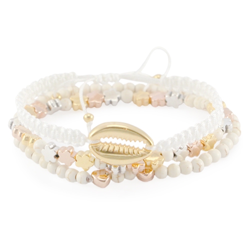 Dieses Set ist super luxuriös! Mit unserem neuen DQ Metall Zubehör können Sie tolle Accessoires machen! Dieses Inspirationsset besteht aus einem Armbandset, Ohrringe, und Leder Armband und einer Kette. Das Armbandset besteht aus einem Macramé Armband mit einer muschelformigen DQ Metall Anhänger, ein Armband mit Keramik Turquoise Perlen und einem Armband mit blumenformigen DQ Metall Perlen in verschiedenen Farben. Es wurde ein luxuriöses Armband gemacht aus 10mm Leder flach und einem neuen DQ Metall Verschluss in Kombination mit Swarovski SS39 Steinen. Dann haben wir noch prachtvolle Ohrringe gemacht in denen Macramé Draht verarbeitet ist und ein hübscher Anhänger. Zum Schluss wurde noch eine prachtvolle Kette gemacht aus gold Jasseron und einem schönen DQ Metall Anhänger.
