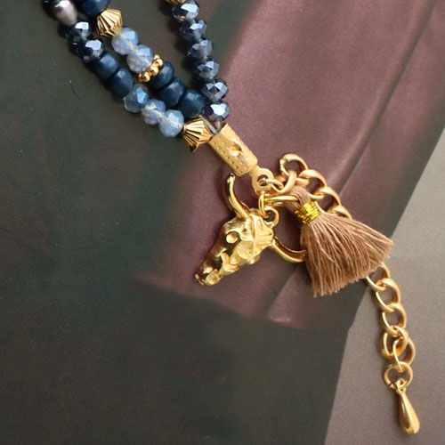 Schmuck Set in schickem Royal blue kombiniert mit Metall DQ gold