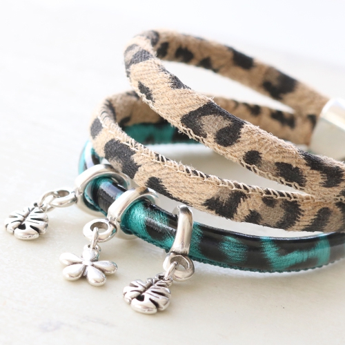 Der hippeste und einfachste Schmuck, den Sie sich vorstellen können: Armbänder aus Imitat Leder mit Panthermuster. Diese Armbänder entwerfen Sie mit dem neuen Imitat Leder, Verschlüssen aus DQ Metall und runden alles mit einem Schieber und anderen Anhängern aus Design Quality Metall ab! Um den Schmuck komplett zu machen, hängen Sie noch eine Quaste in der passenden Farbe dran. Das Imitat Leder mit der leichten Metallic Beschichtung ist sicher unser Favorit. Welches Armband aus diesem Set werden Sie machen?